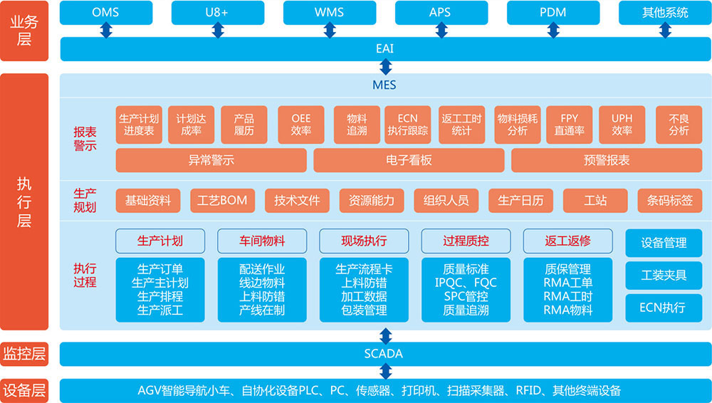 | 兼容主流的 CNC、PLC、种种智能终端 | 围绕生产焦点,收罗、传输、存储、管理工业大数据 | 以MES系统为焦点,实现智能排产,提高职员、装备、仓储效率 |
